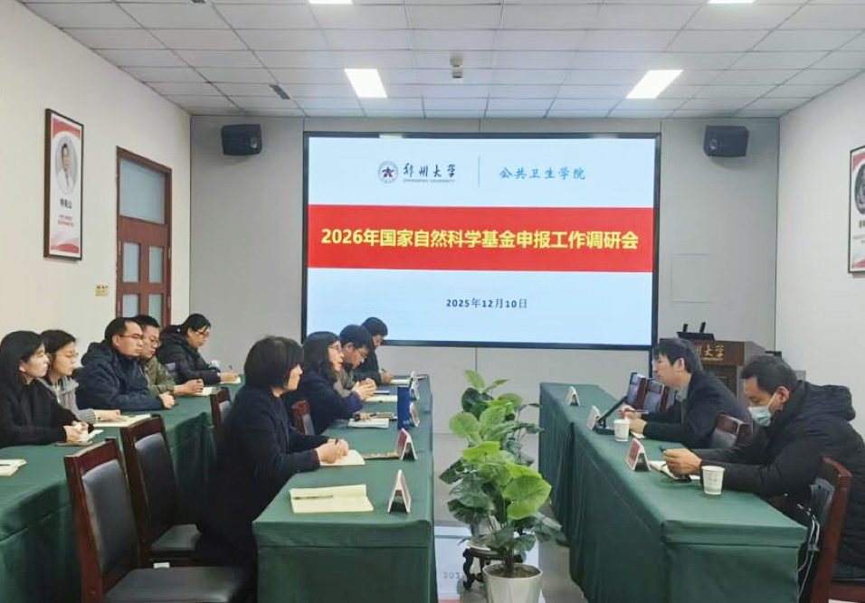 为扎实推进2026年度国家自然科学基金申报工作,12月10日上午,郑州大学科研院执行院长陈刚一行莅临公共卫生学院,专题调研学院2026年国家自然科学基金项目申报准备情况。学院执行院长臧明玺等领导班子成员及教师代表参会,会议由学院副院长郝长付主持。
